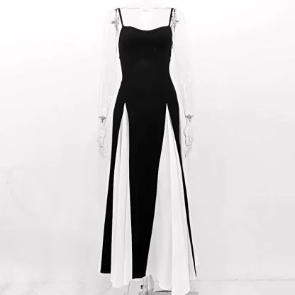 Party Dress Black And White Spaghetti Strap Sexy Maxi Dresses