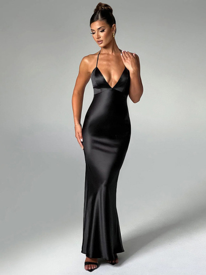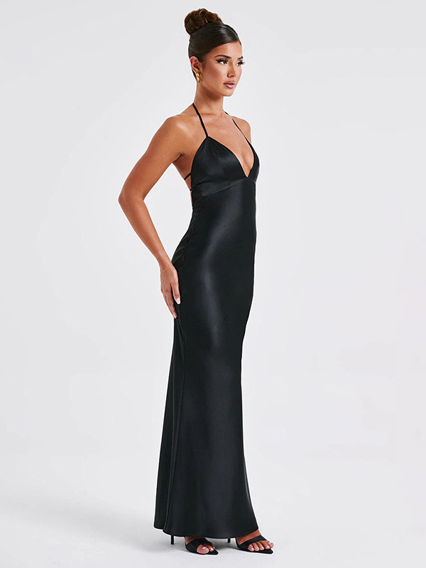 Party Dresses Black V-Neck Sleeveless Backless Semi Formal Dress