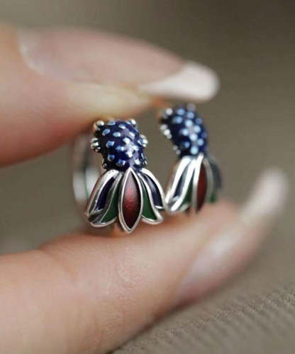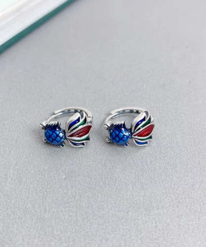 Retro Colorblock Sterling Silver Enamel Koi Carp Hoop Earrings