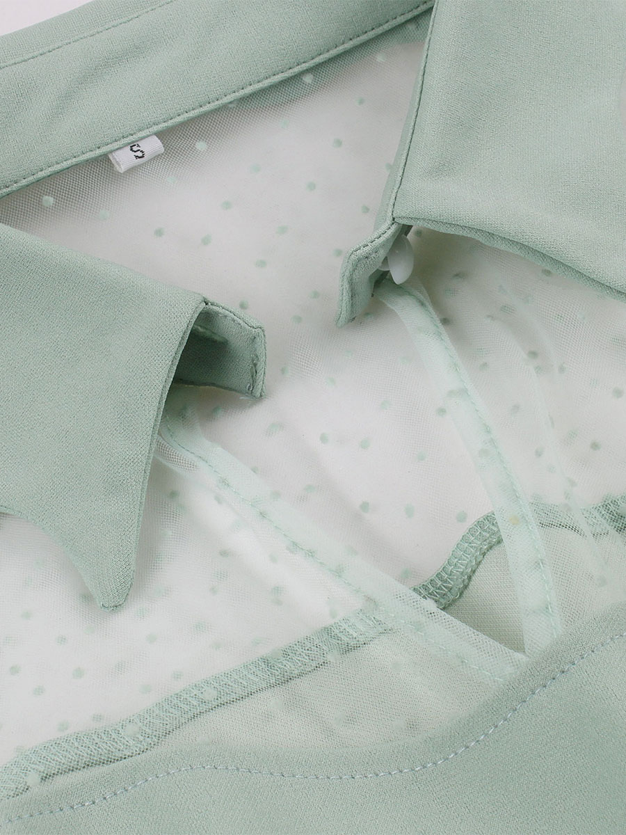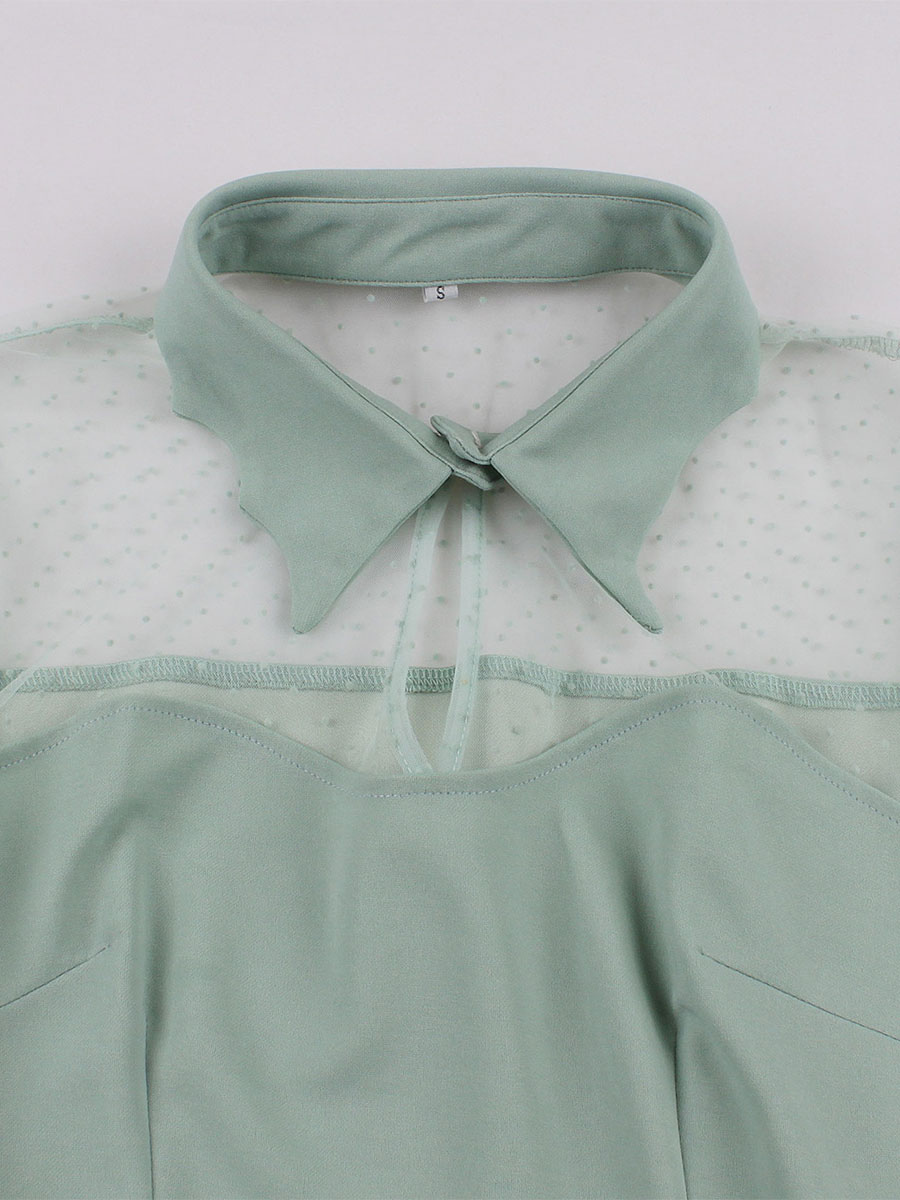 Vestido retro estilo Audrey Hepburn de los años 1950, verde claro con lunares, mangas largas, vestido rockabilly para mujer.