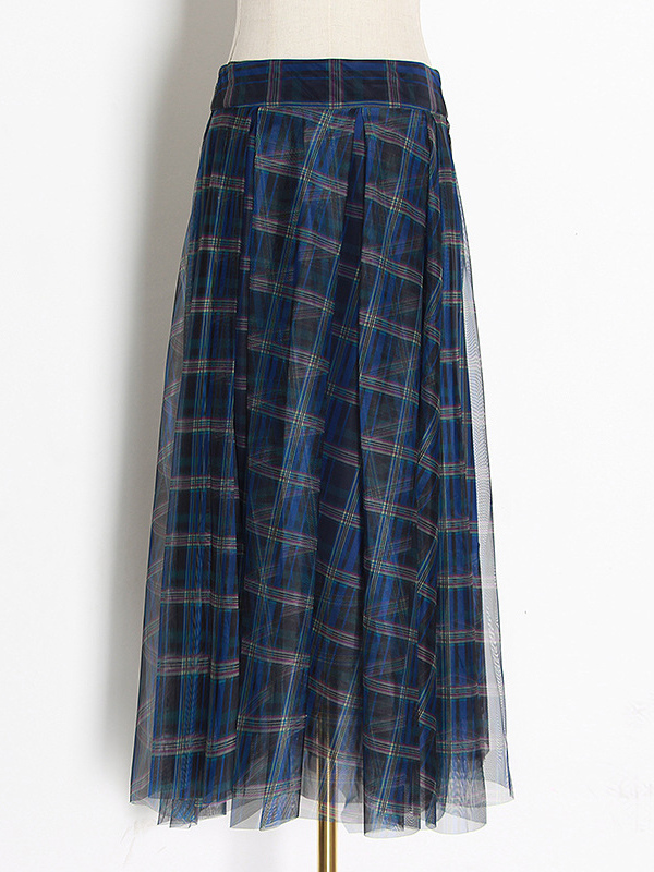 Scotland Plaid Overskirt High Waist Handkerchief Tulle Daily Casual Skirts