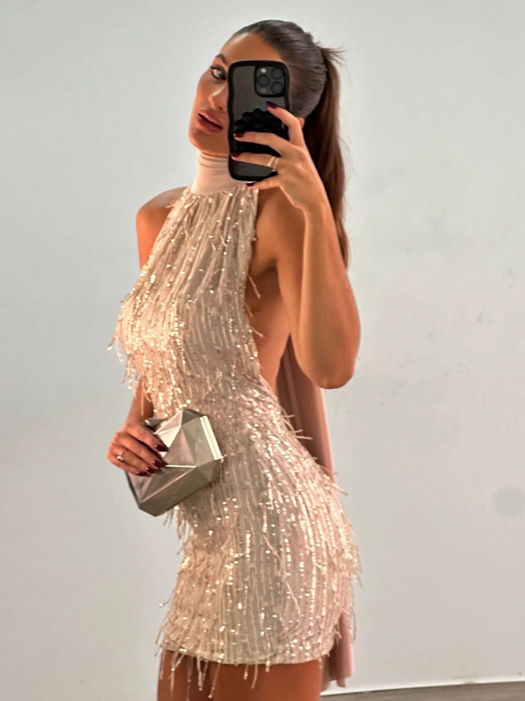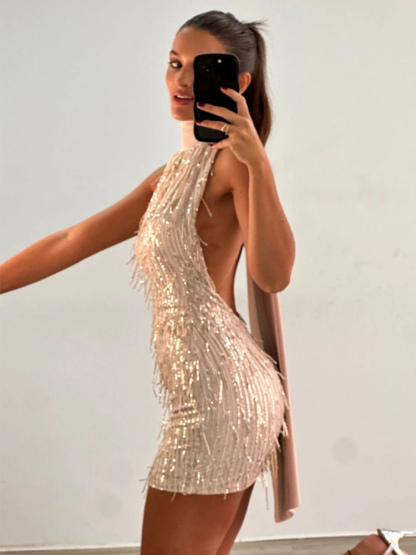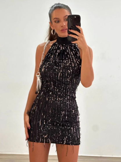 Sequin Halter Dress Sparkly Mini Party Dress For Women 2025