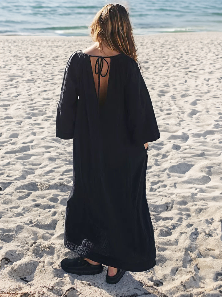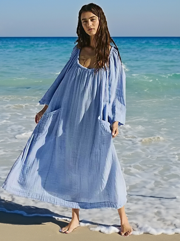 Shift Dresses V-Back Pockets Three Quarters Comfortable Summer Beach Dresses