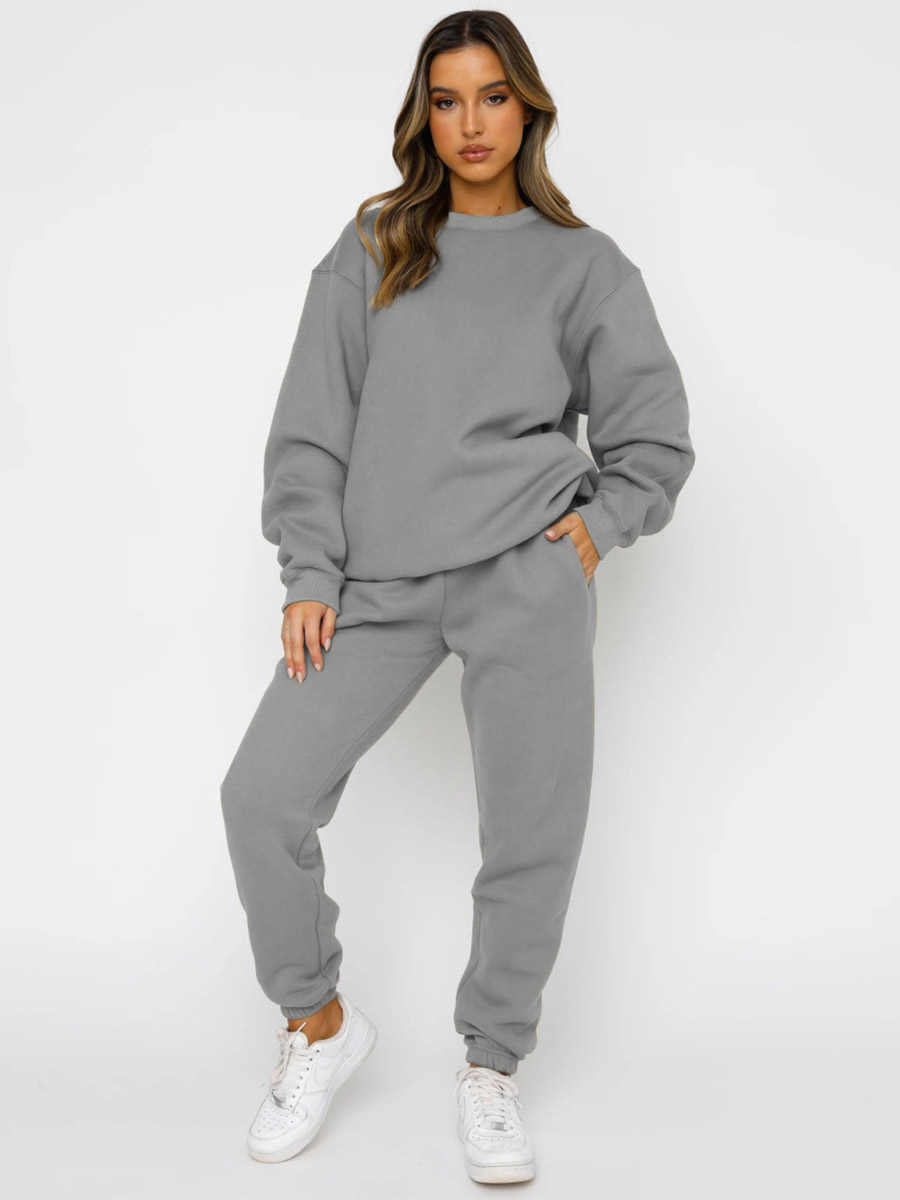 Solid Color Tracksuit Drop Shoulder Top And Tapered Fit Bottom Set
