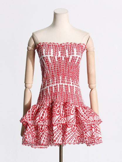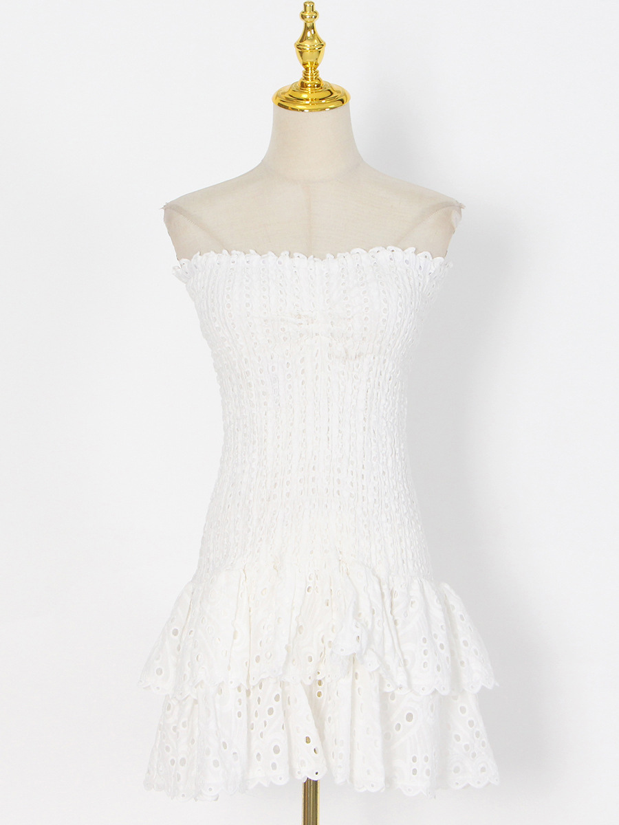 Strapless Dress Pleated Layered Cutout Graduation Birthday Party Short Dresses