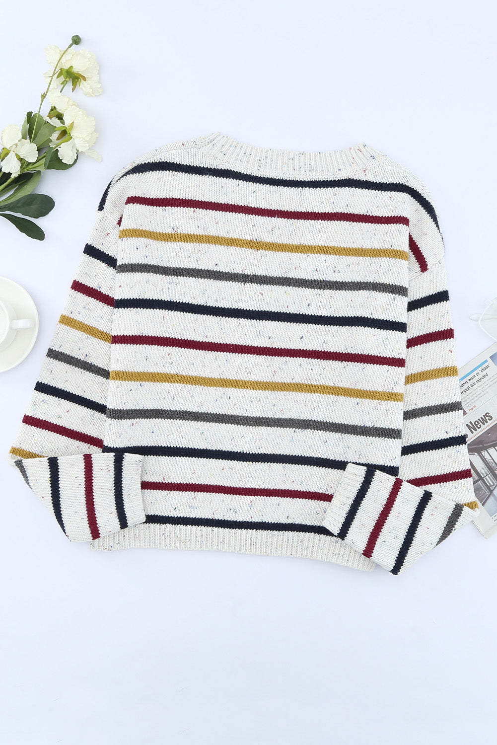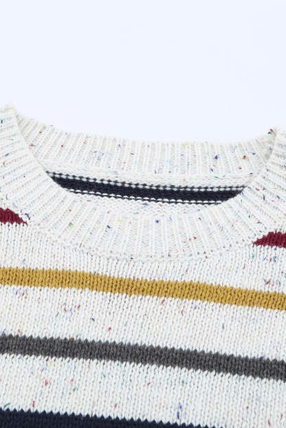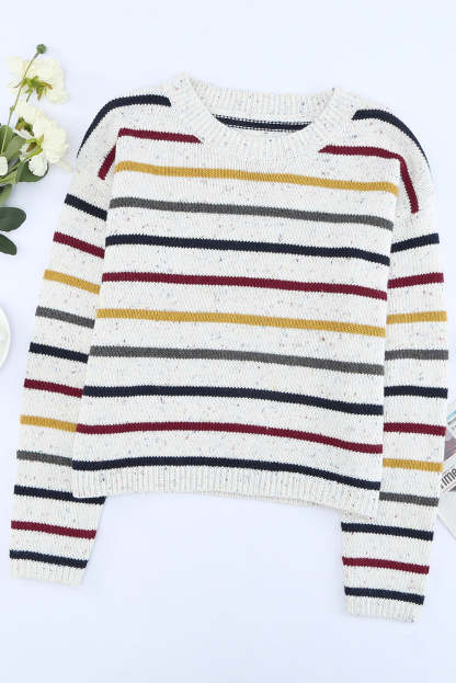 Striped Drop Sleeve Crew Neck Knit Sweater