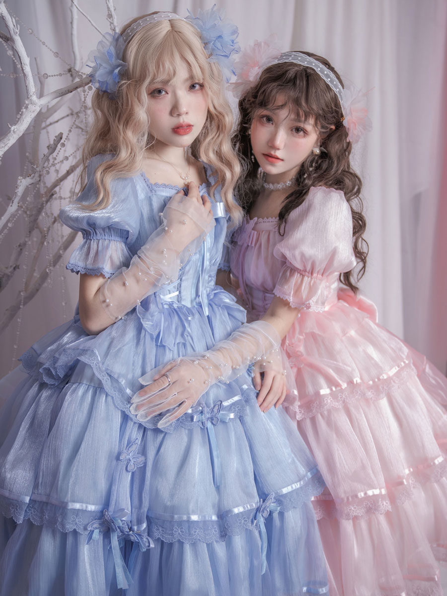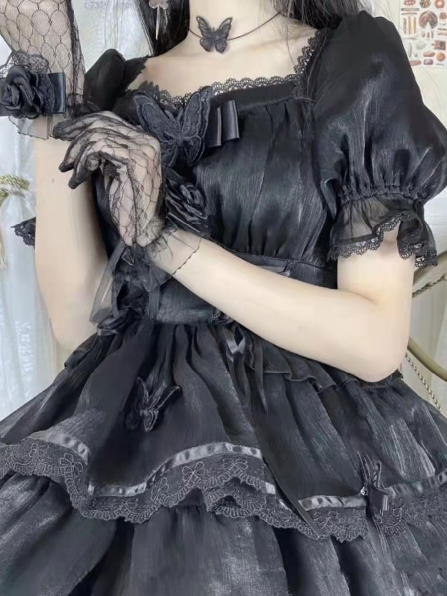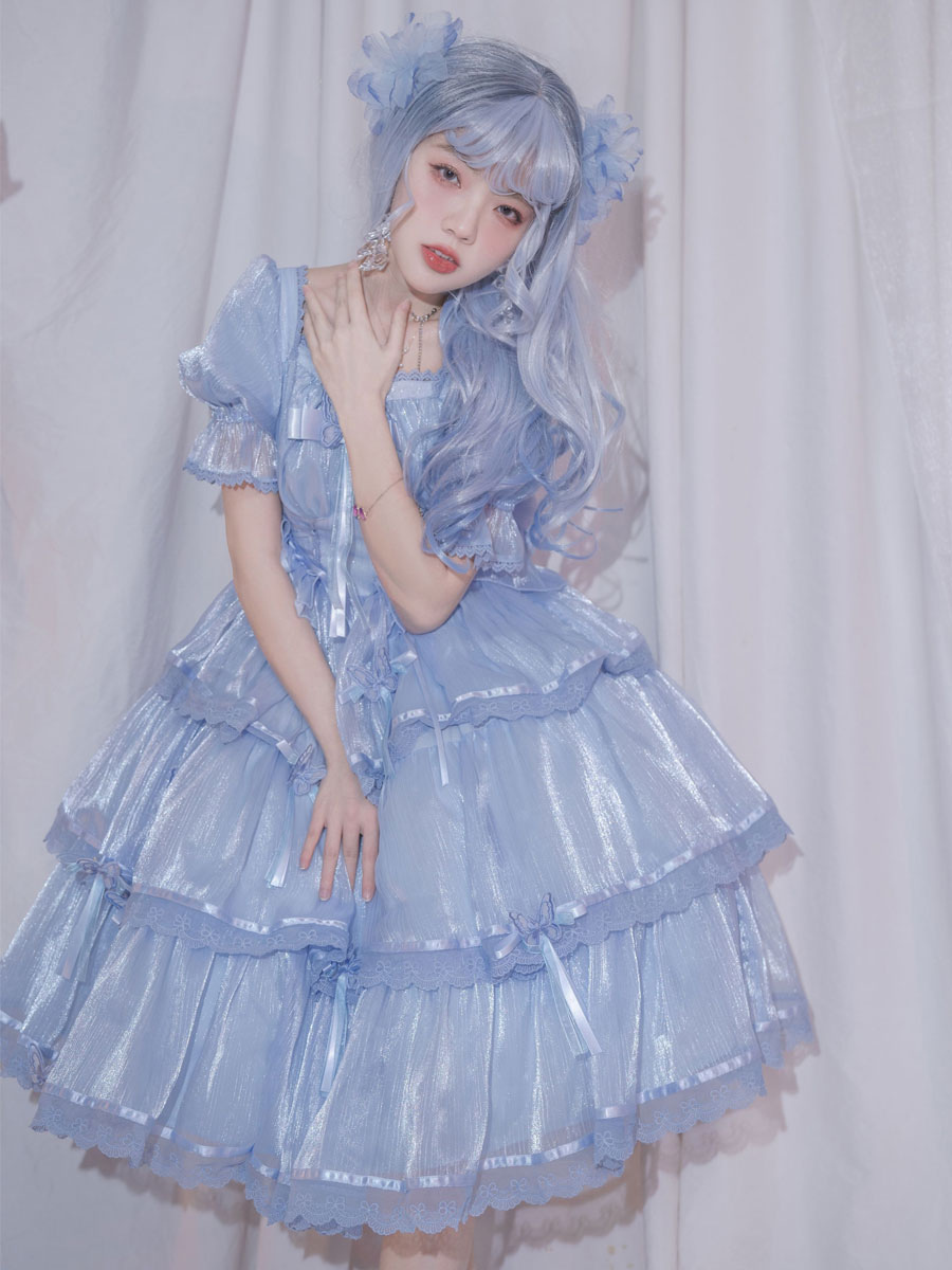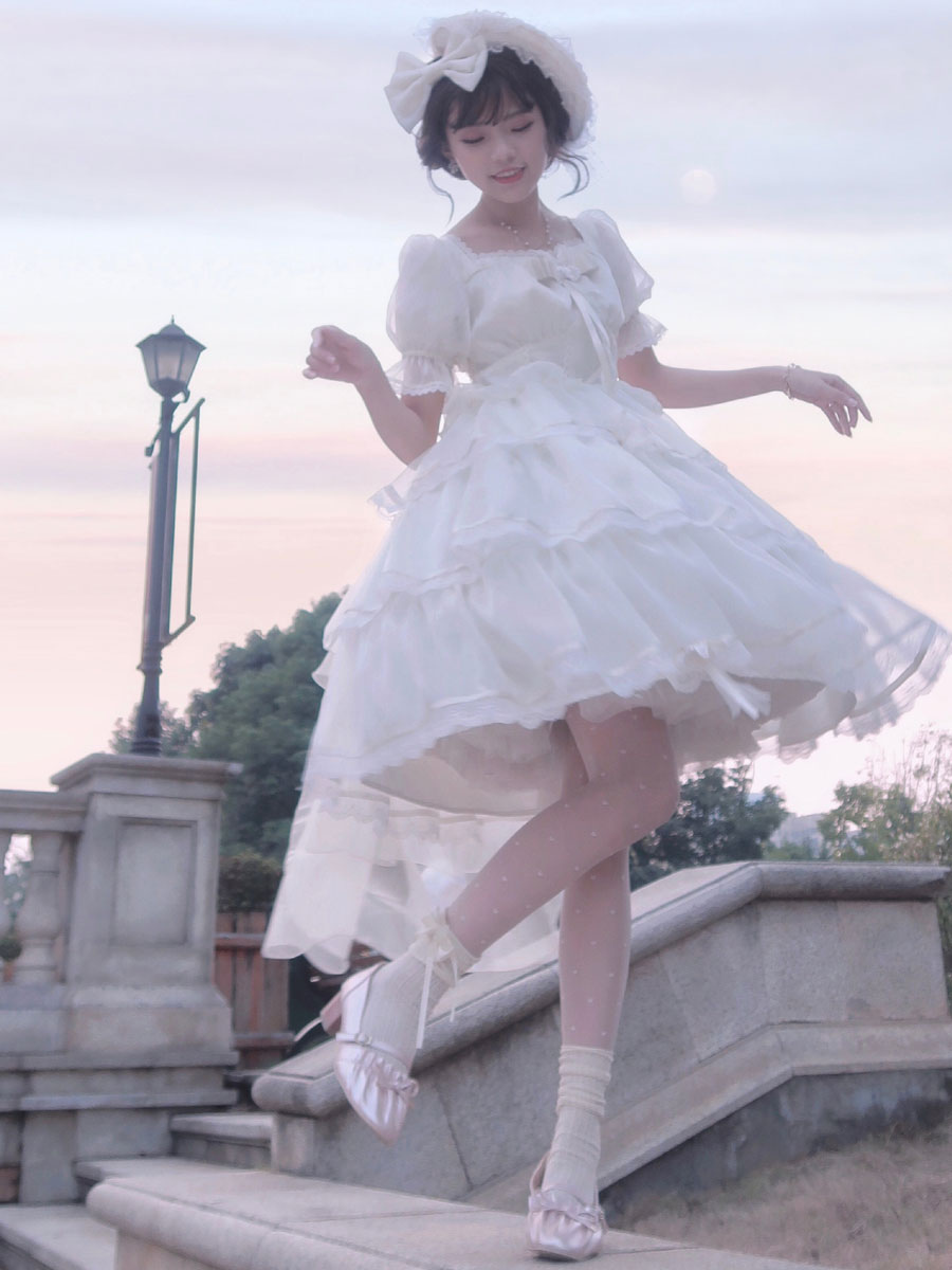 Sweet Lolita Dress Polyester Short Puff Sleeves Dress