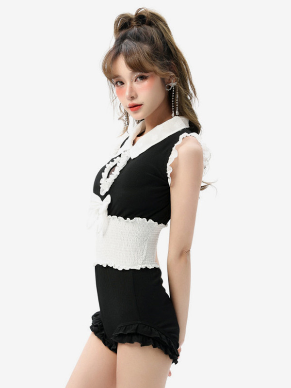Sweet Lolita Outfits Ecru White Ruffles Bows Sleeveless Jumpsuit