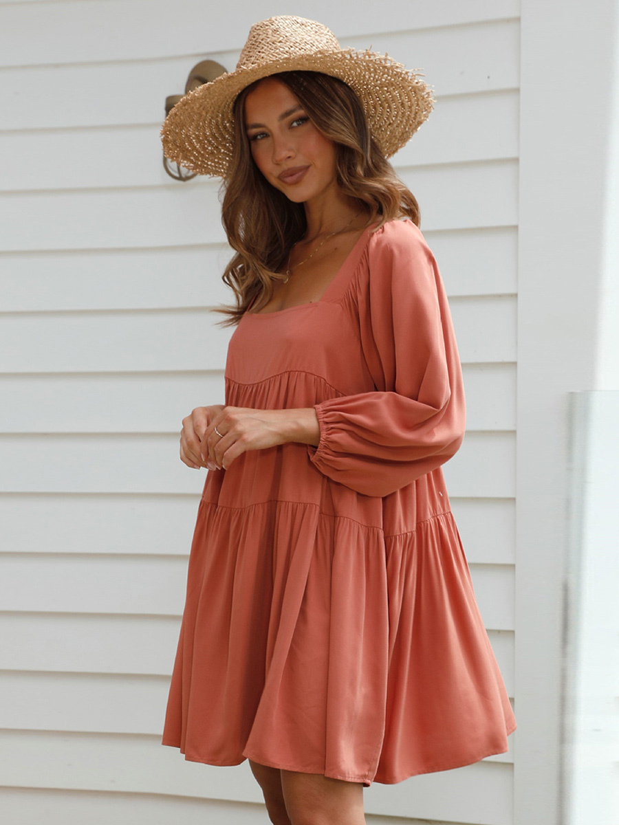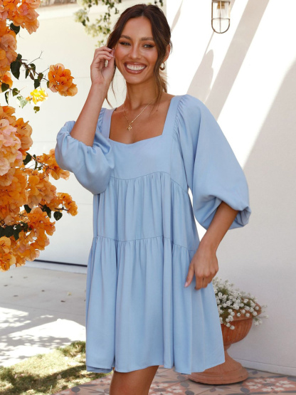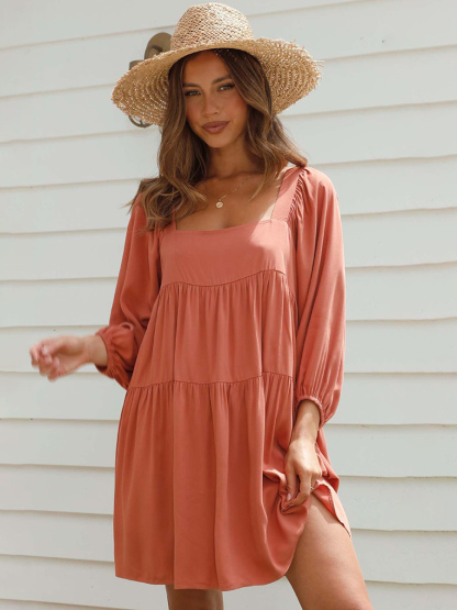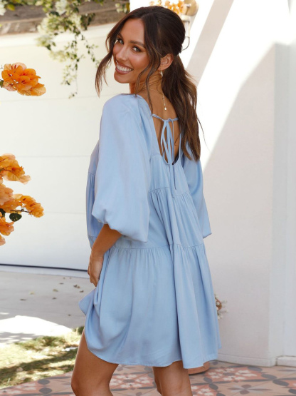 Tunic Dress Half Sleeves Backless Tiered Summer Casual Short Dresses