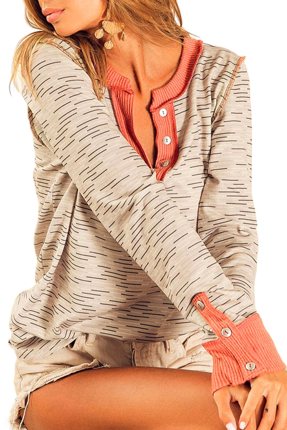 Blanco Irregular Rayas de Alfiler Colorblock Henley Top