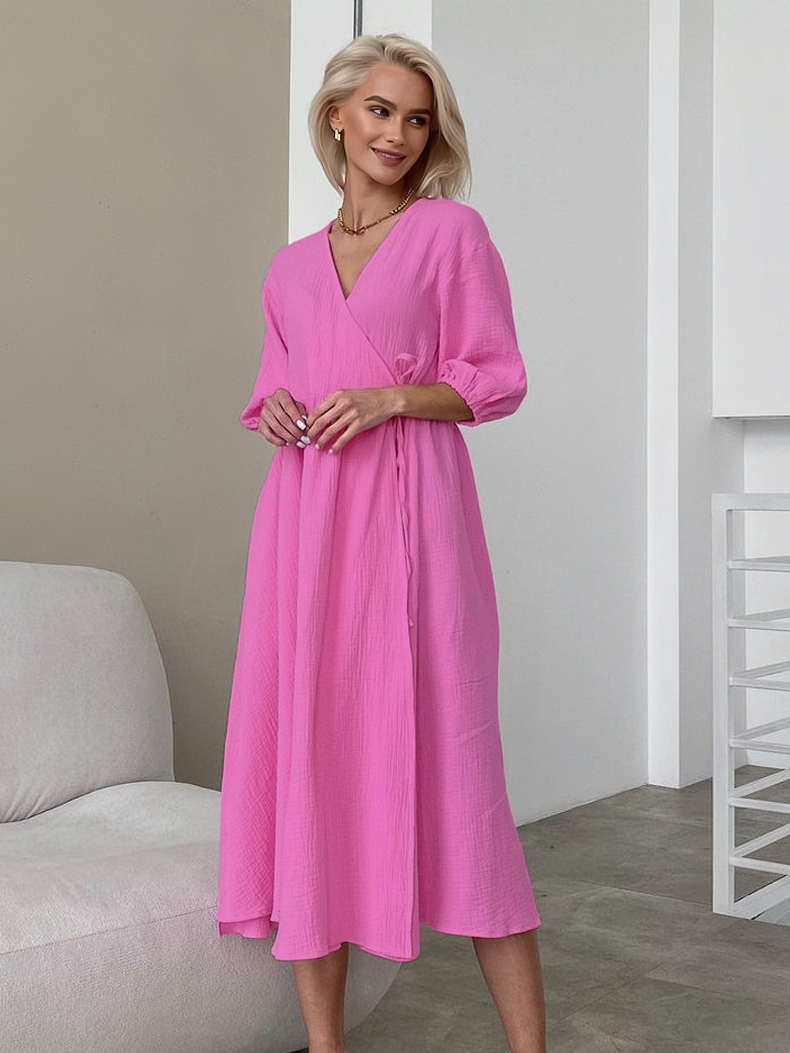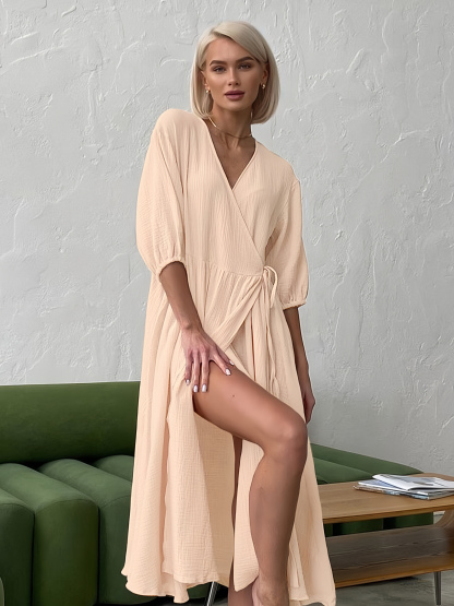 Wrap Dress V-Neck Half Sleeves Belted Casual Summer Midi Dresses
