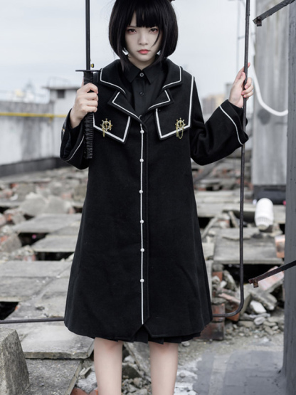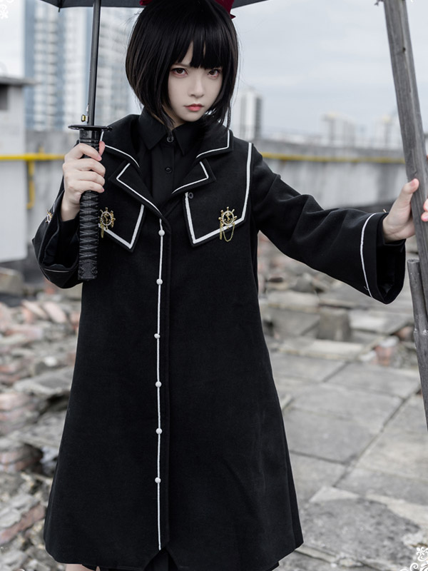 Academic Lolita Coats Black Coat Overcoat Polyester Spring Lolita Outwears
