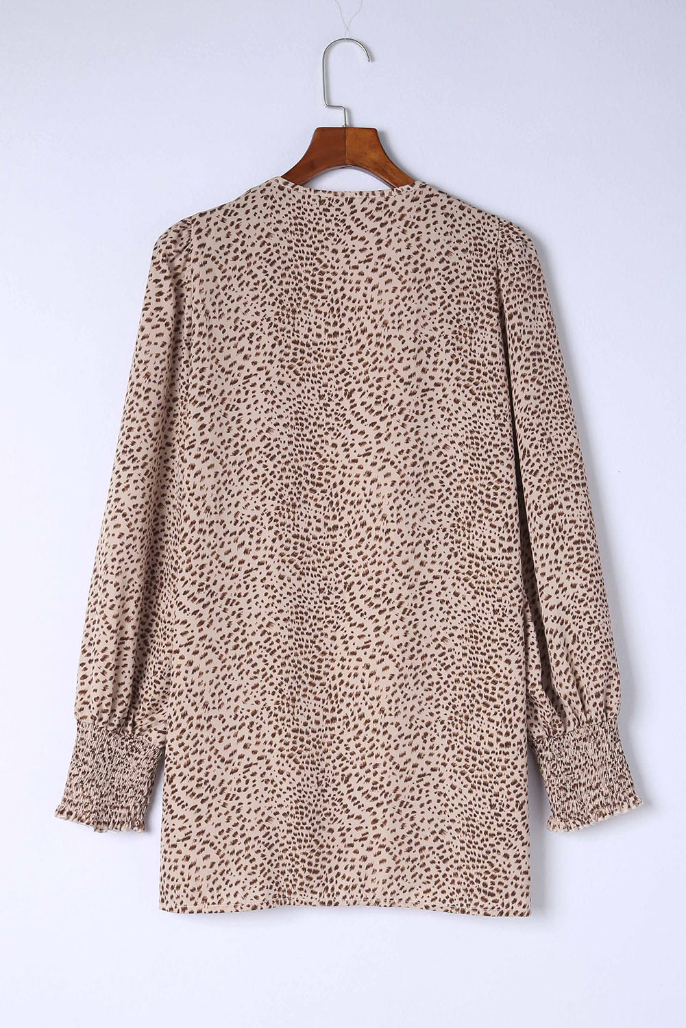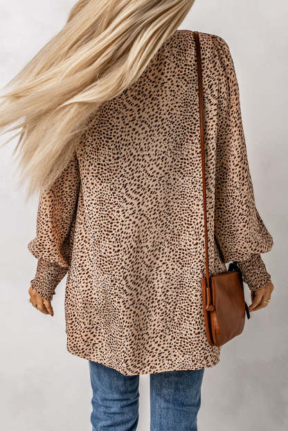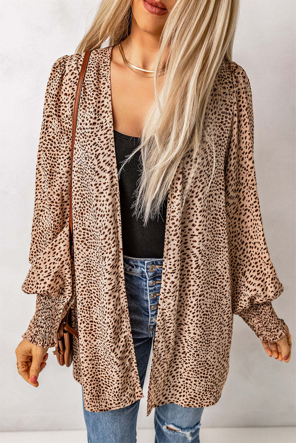 Apricot Animal Print Shirred Cuff Lantern Sleeve Cardigan