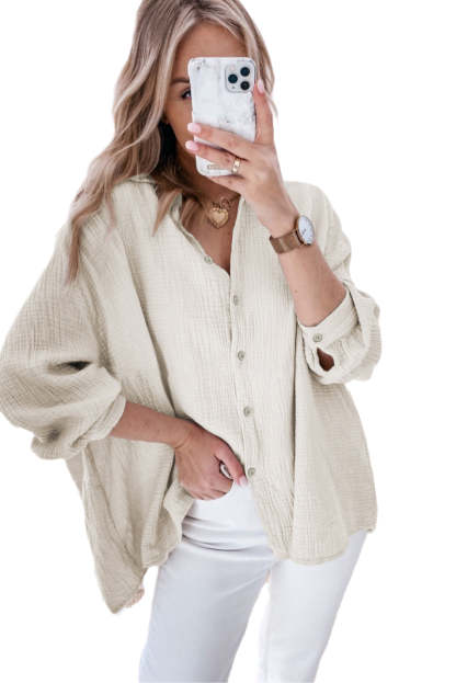 Apricot Crinkle 3/4 Sleeve Oversized Shirt