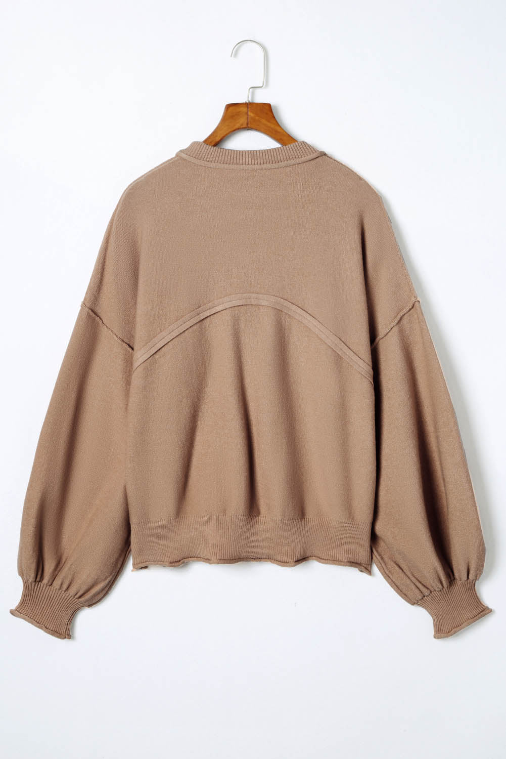 Apricot Raw Edge Patch Pocket Exposed Seam Loose Sweater