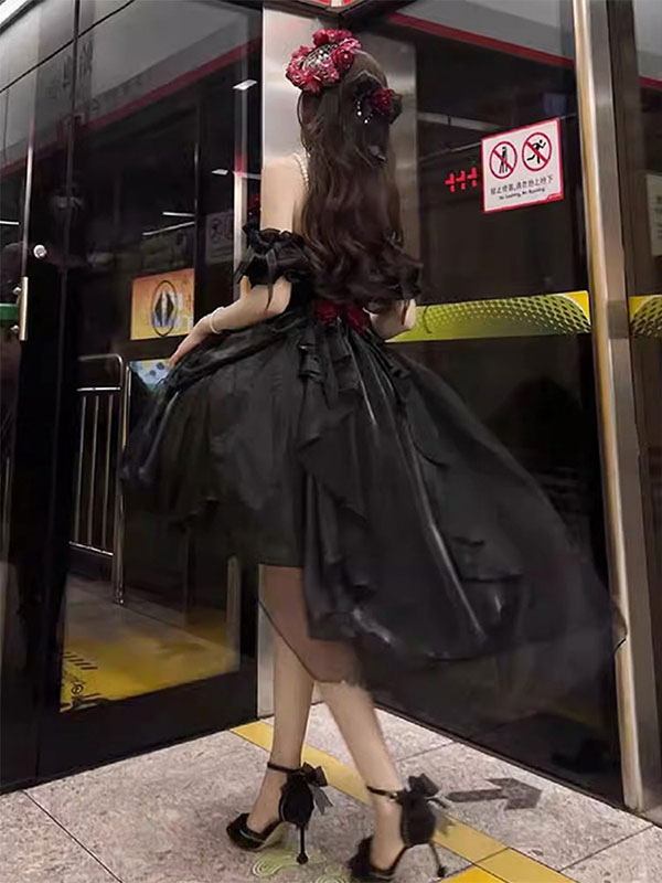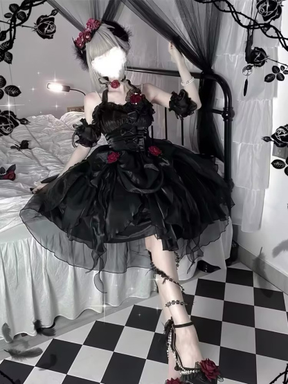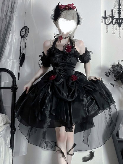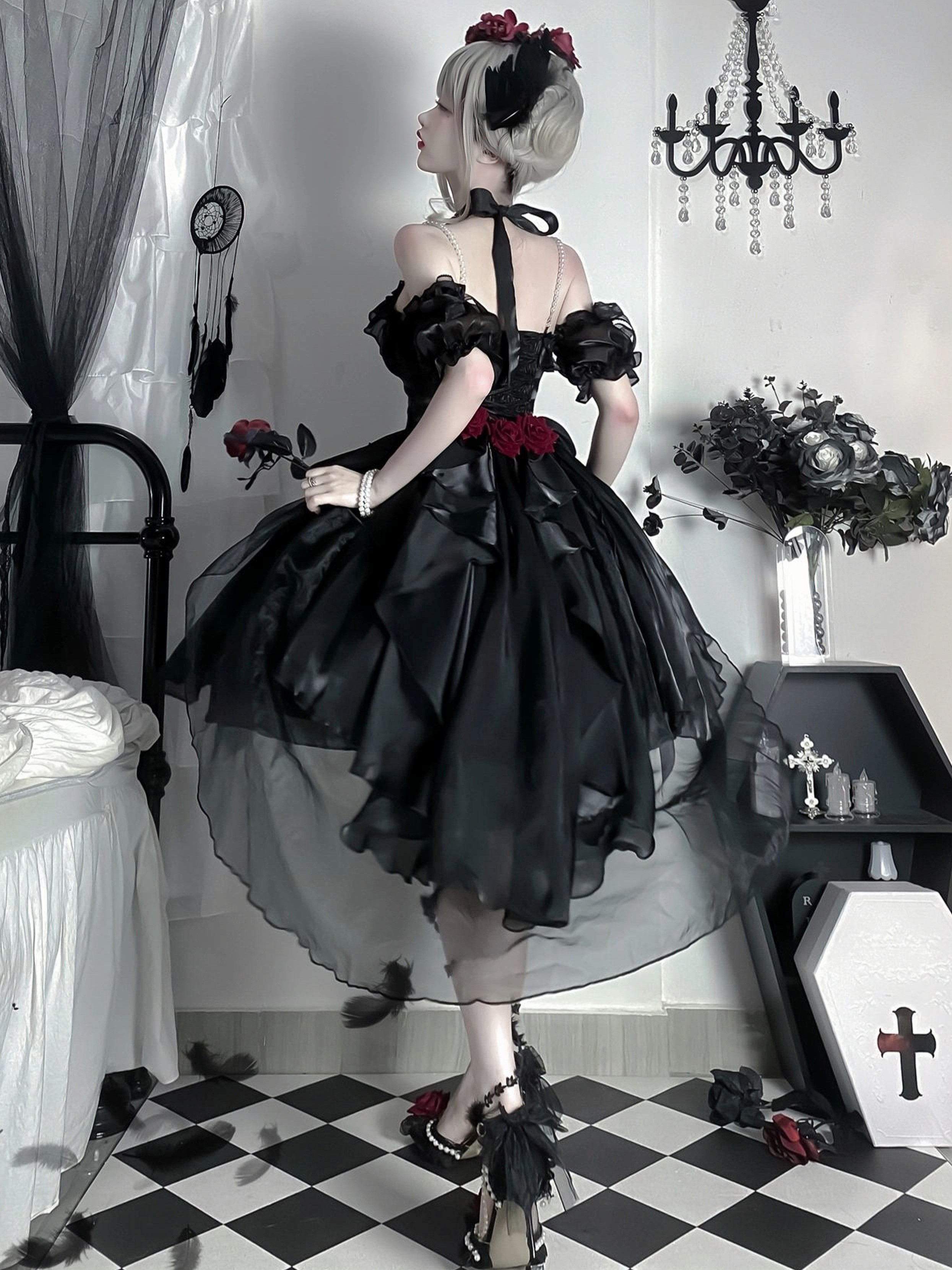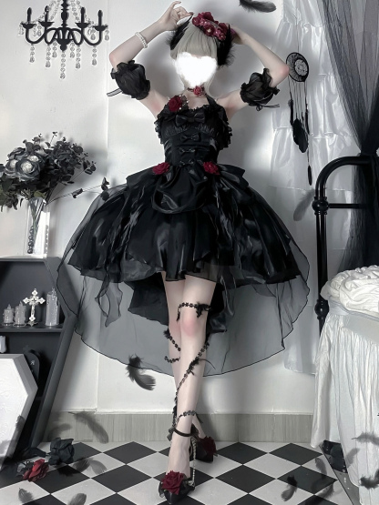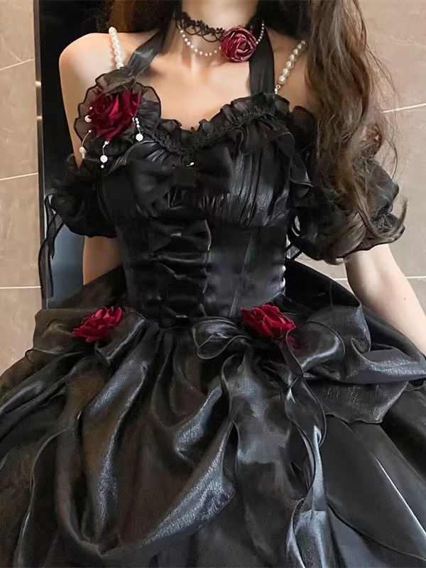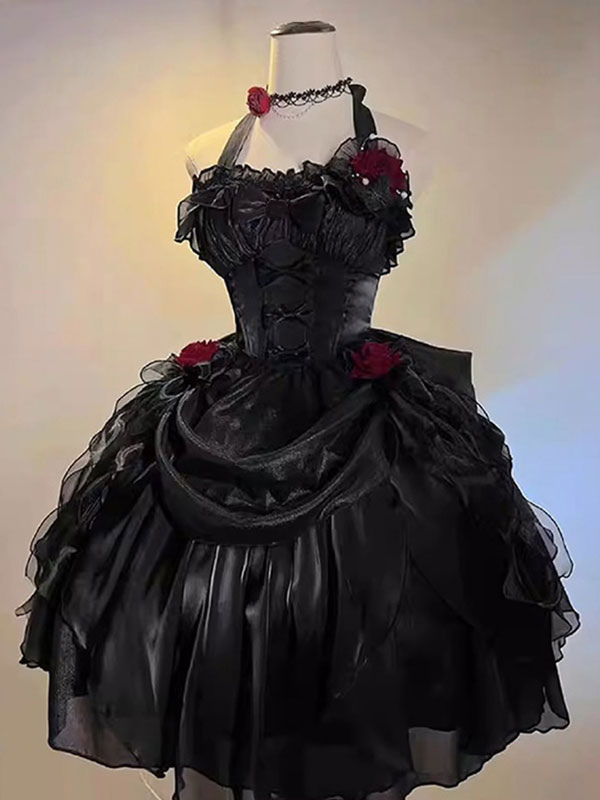 Back to school Gothic Lolita Dresses Ruffles Bows Black JSK Gorgeous French Romantic Lolita Princess Dress