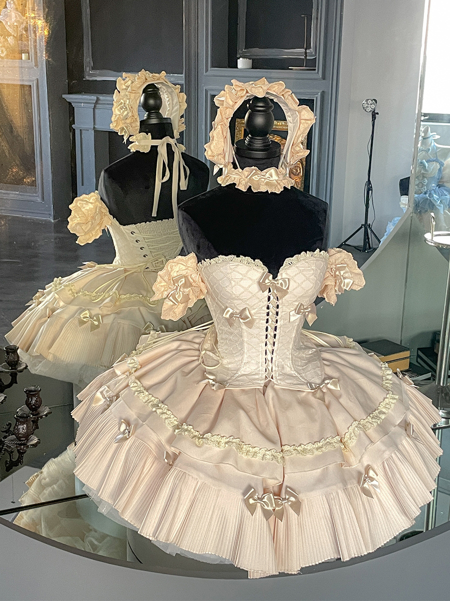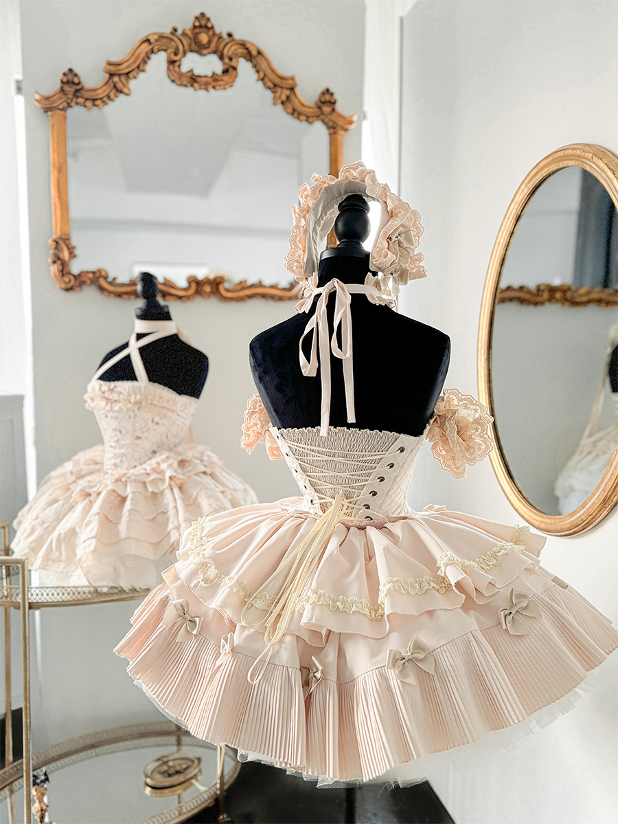 Sweet Lolita Suit Beam Vest And Puffy Skirt And Hairband And Halter Neck And Sleeves 5-piece Suit
