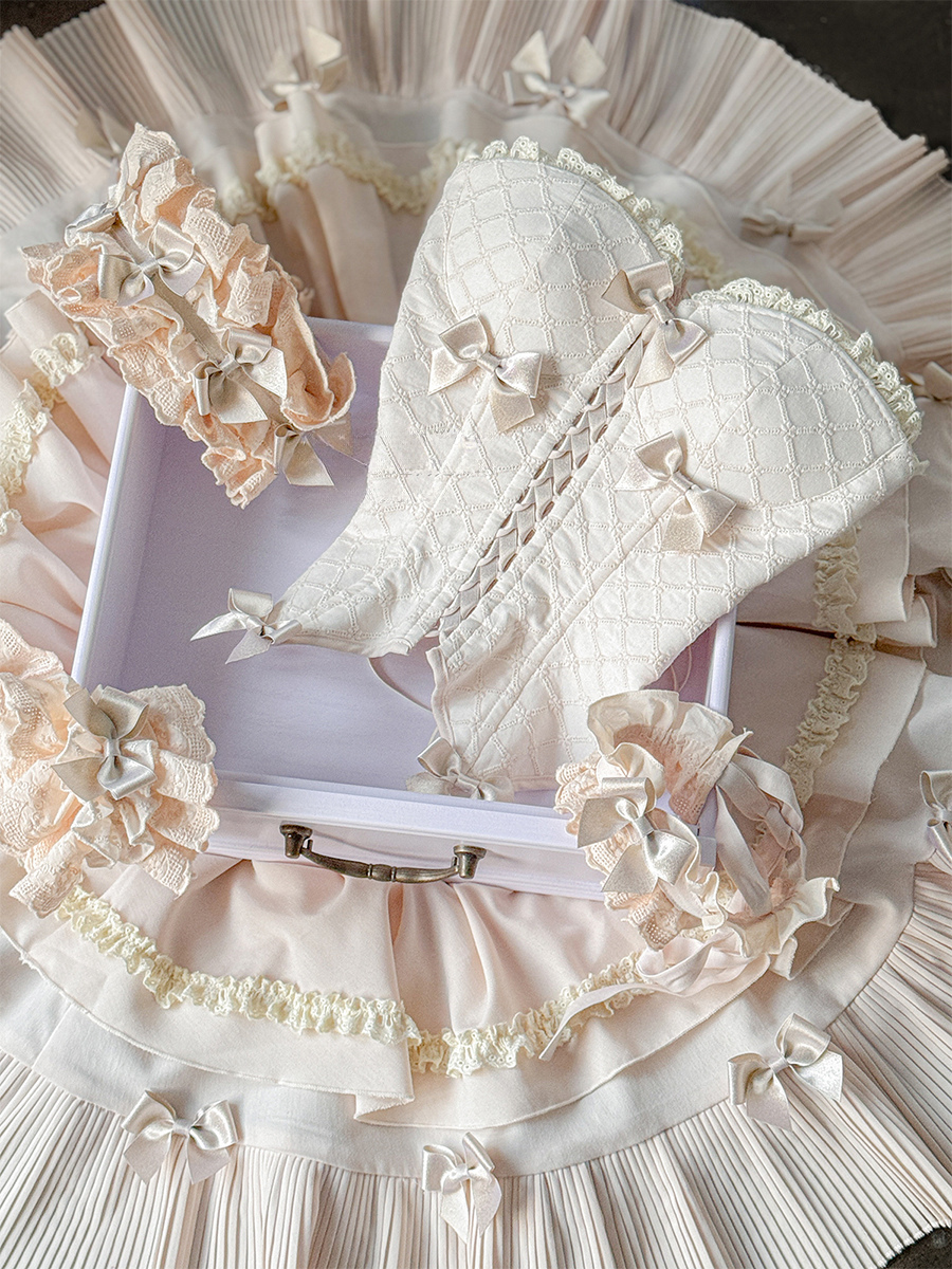 Product Description: Embrace doll-like perfection with this 5-Piece Sweet Lolita Coord, adjustable vest, and voluminous tiered skirt for maximum kawaii impact.