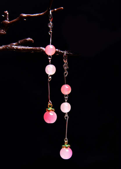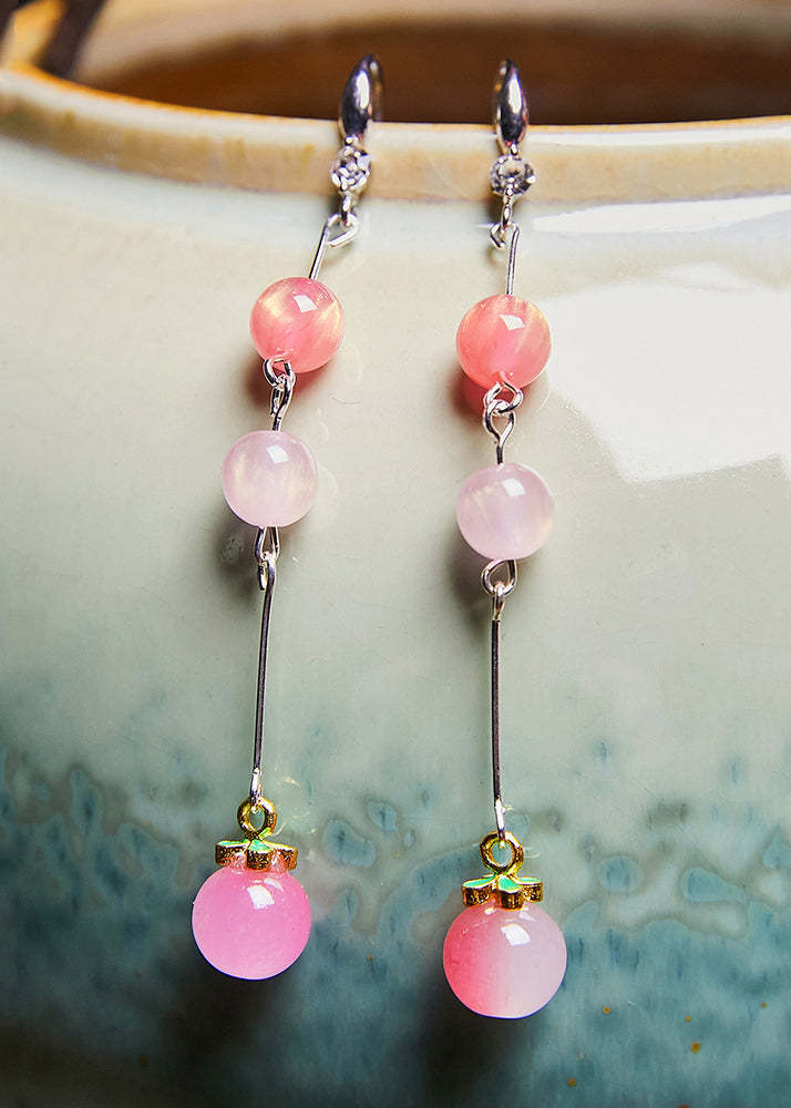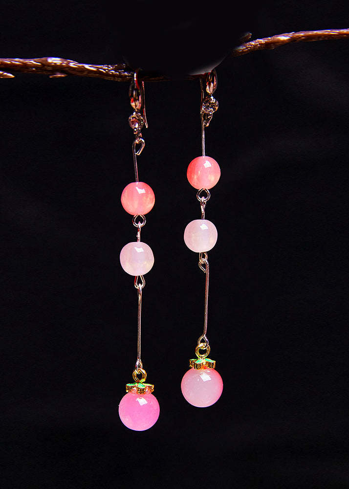 Beautiful Pink Beads Acrylic Tassels Drop Earrings