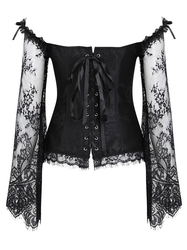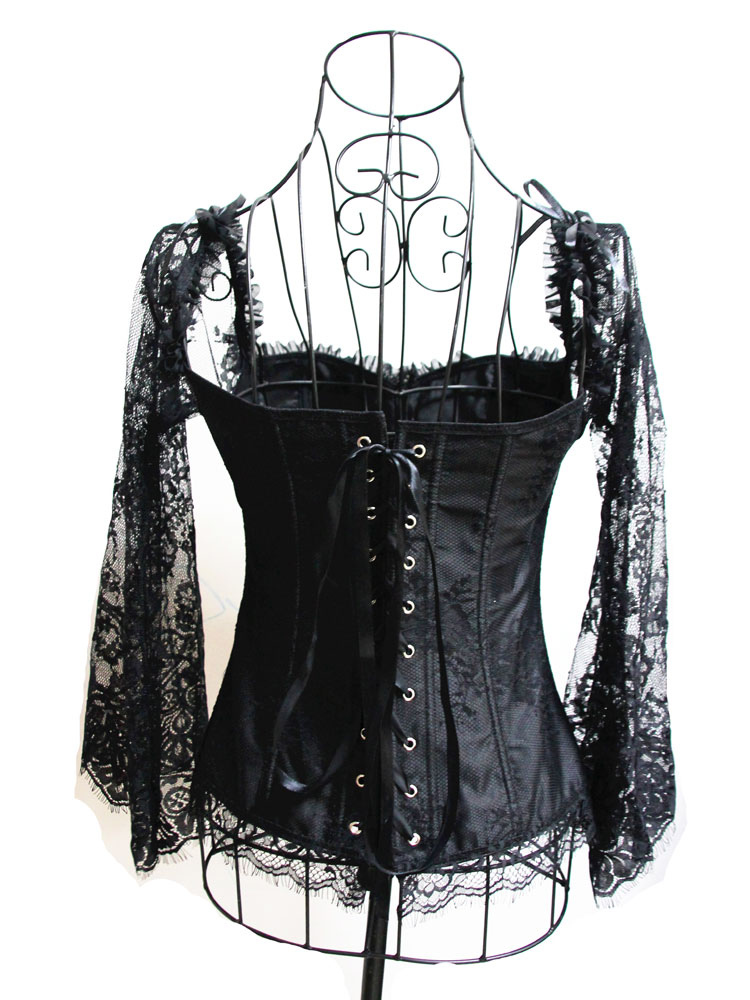 Black Strapless Corset Women Sweetheart Neckline Lace Up Two Tone Embroidered Classic Corset