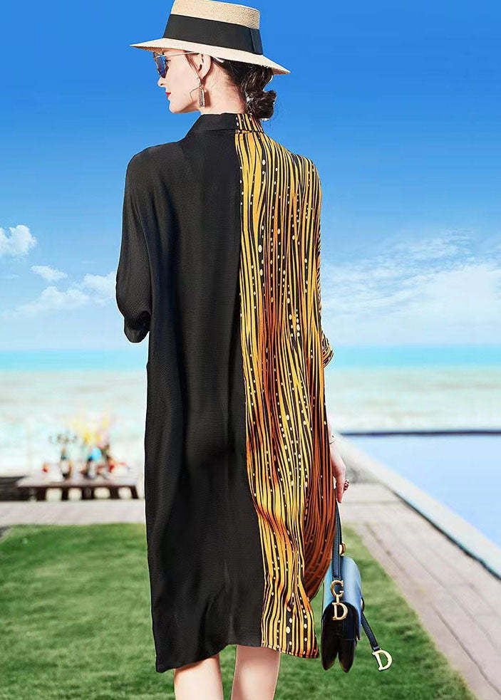 Bohemian Colorblock Peter Pan Collar Print Patchwork Silk Shirts Dress Spring
