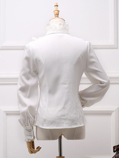 Classic Lolita Blouse White Bow Ruffle Lace Chiffon Lolita Shirt