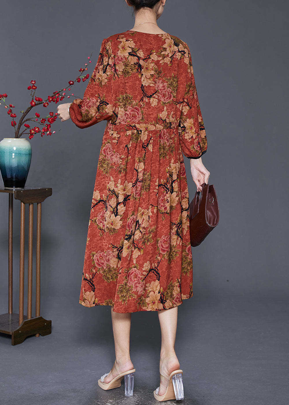 Classy Dull Red Cinched Print Maxi Dress Fall