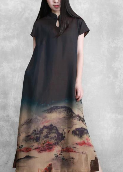 Classy Satin Dress Ink printing Maxi Dress