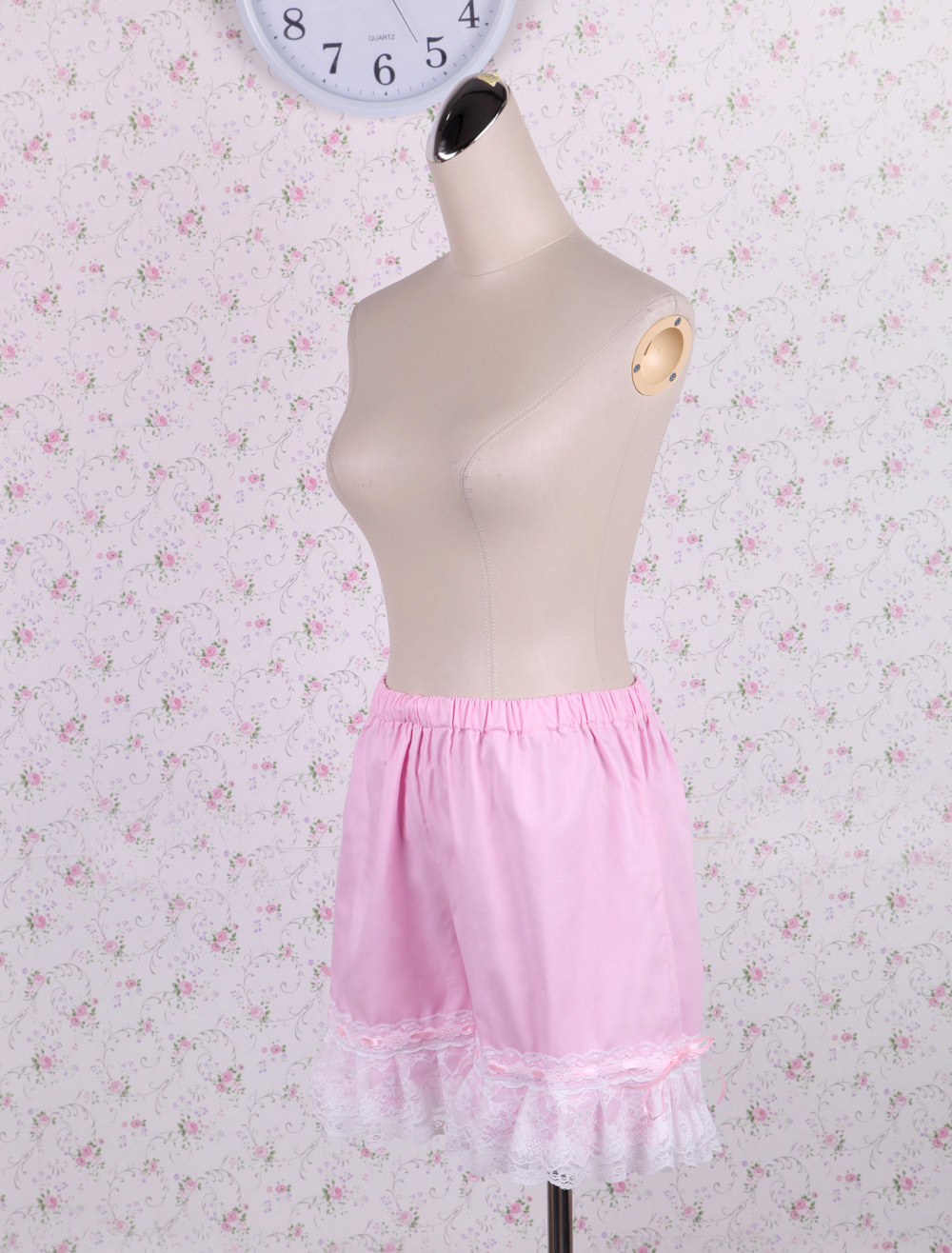 Cotton Pink Lolita Bloomers Shirring Lace Trim