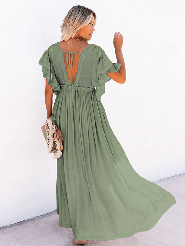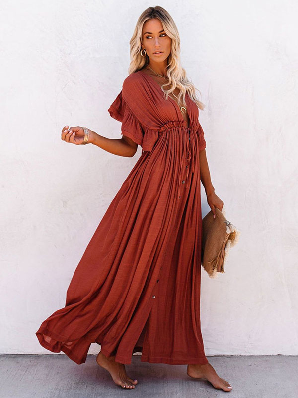 Cover Ups For Women Apricot Buttons V-Neck Short Sleeves Layered Summer Beach Bathing Suits
