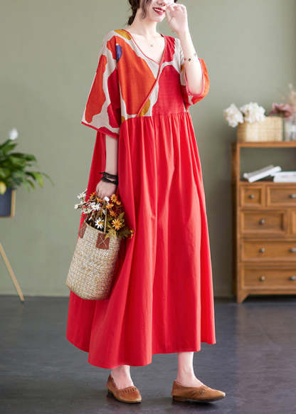 Cute Red Patchwork Print Maxi Dresses Summer