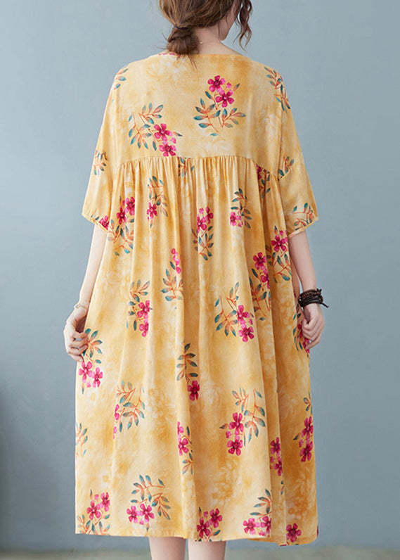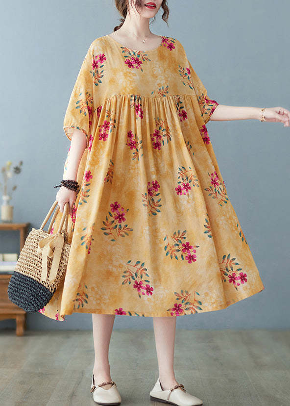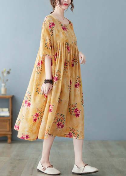 Cute Yellow Patchwork Print Cotton Holiday Maxi Dresses Summer