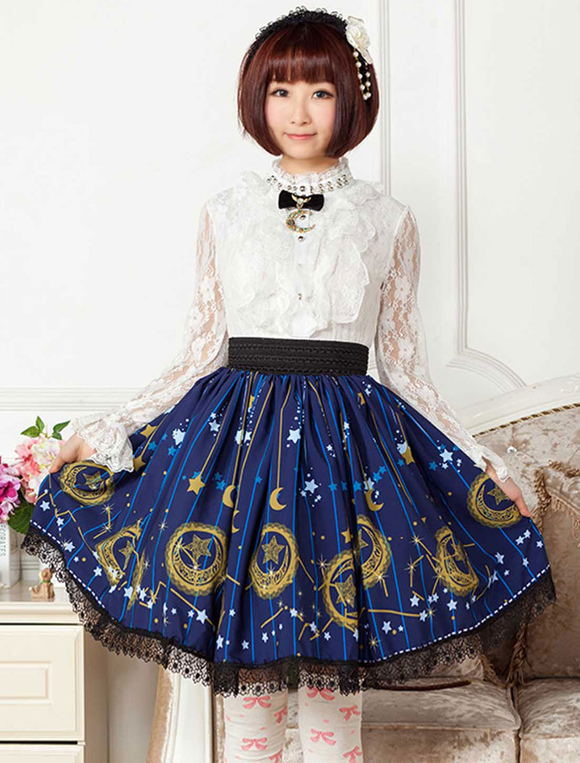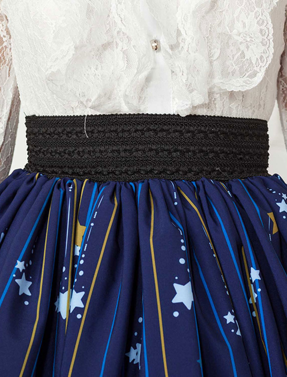 Deep Blue Star Printed Polyester short Lolita Skirt dress for Girls