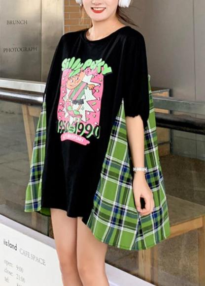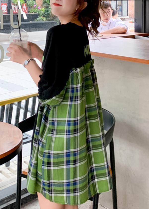 Diy Black Print Cotton Patchwork lantern sleeve Summer Maxi Dresses