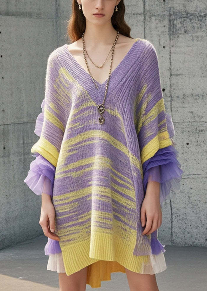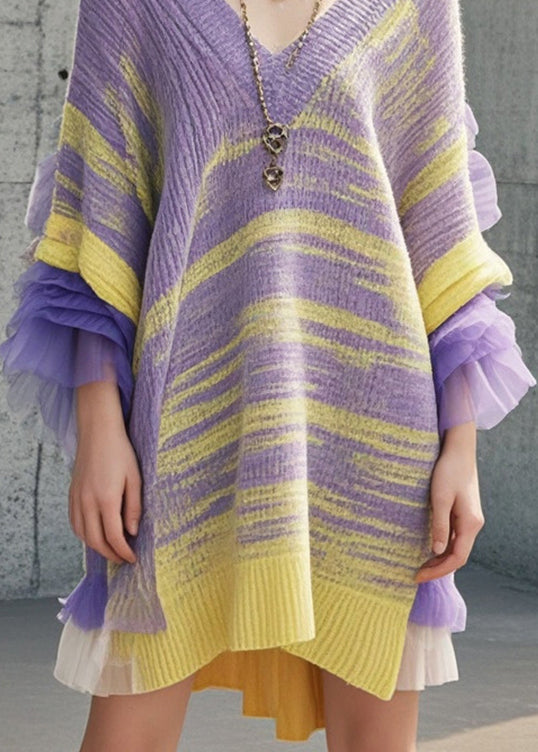 DIY Multicolor Tie Dye Patchwork Tulle Sweater Dress Fall