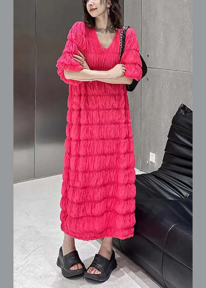 DIY Rose V Neck Chiffon Maxi Dress Short Sleeve