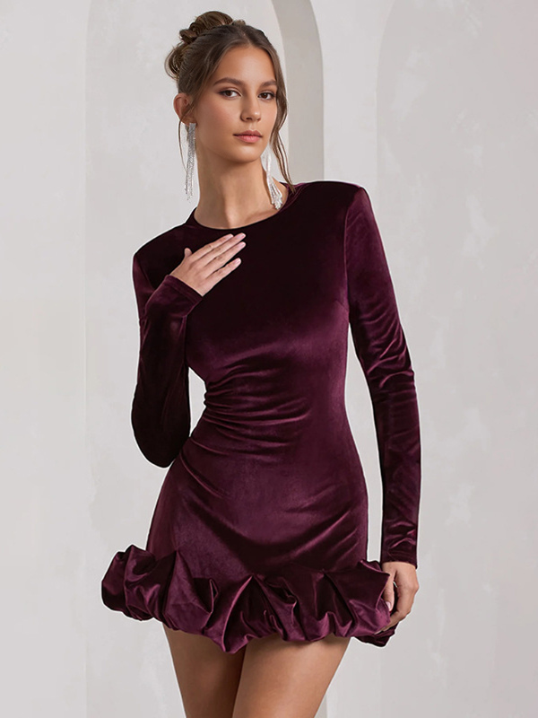 Elegant Velvet Mini Dress With Ruffle Hem Long Sleeve Bodycon Dress For Women 2025