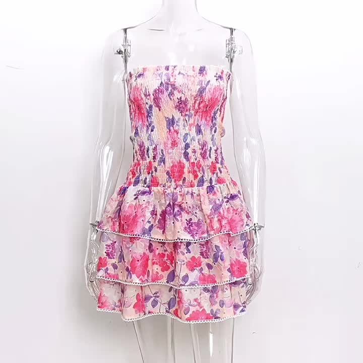 Floral Dress Off The Shoulder Pleated Layered Brunch Birthday Party Mini Dresses