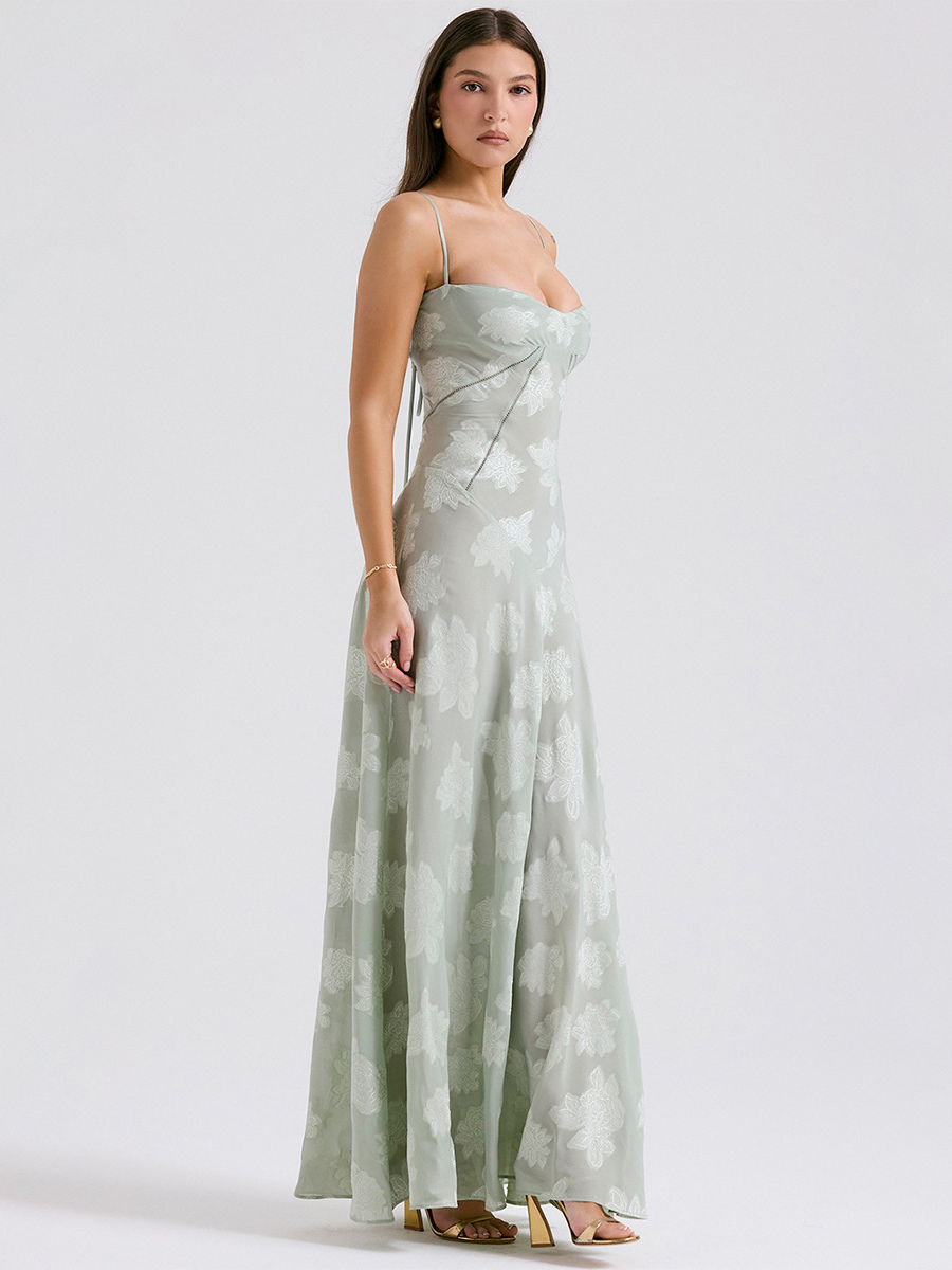 Floral Dress Spaghetti Straps Backless Lace Up Brunch Party Maxi Dresses