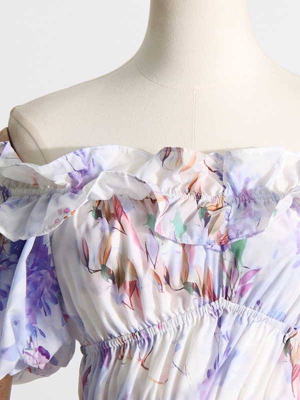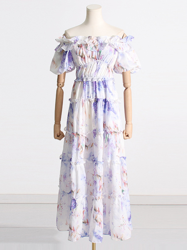 Floral Dress Tiered Ruffles Off The Shoulder Elegant Party Prom Maxi Dresses