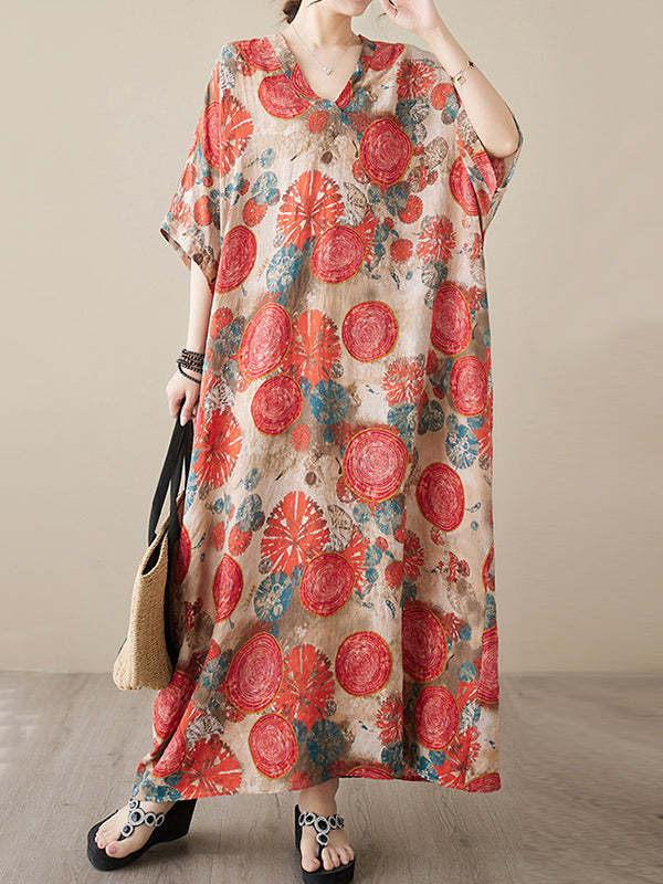 Floral Printed V-Neck Maxi Dress Short Sleeve
