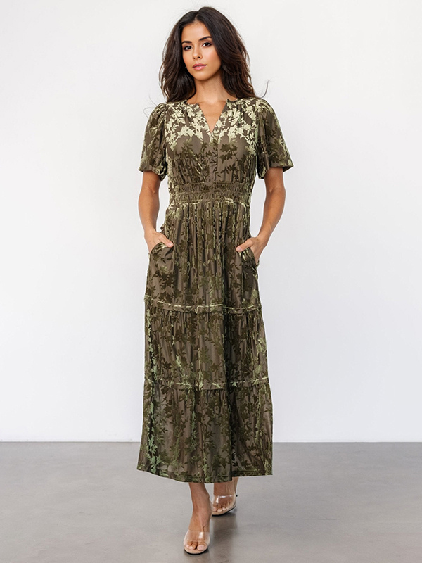 Floral Velvet Dress V-neck Short Sleeve Summer Long Dress For Women 2025