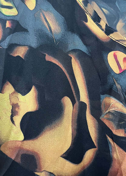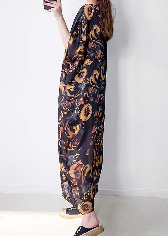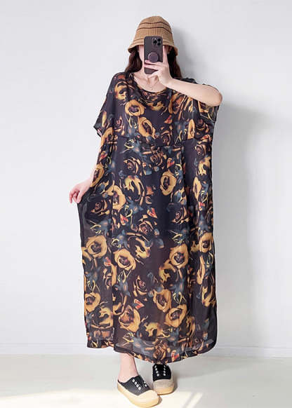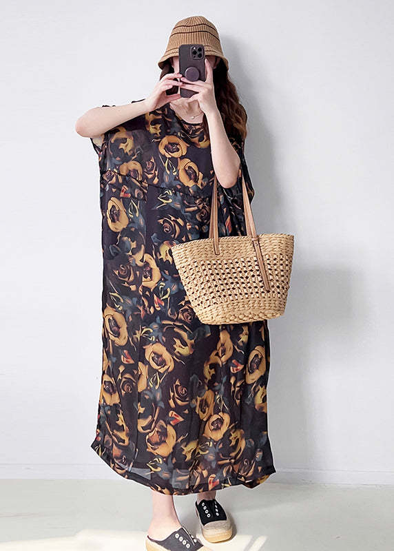 French Black Oversized Print Chiffon Maxi Dress Summer