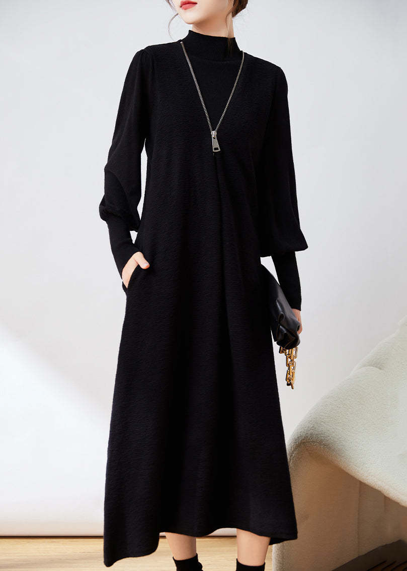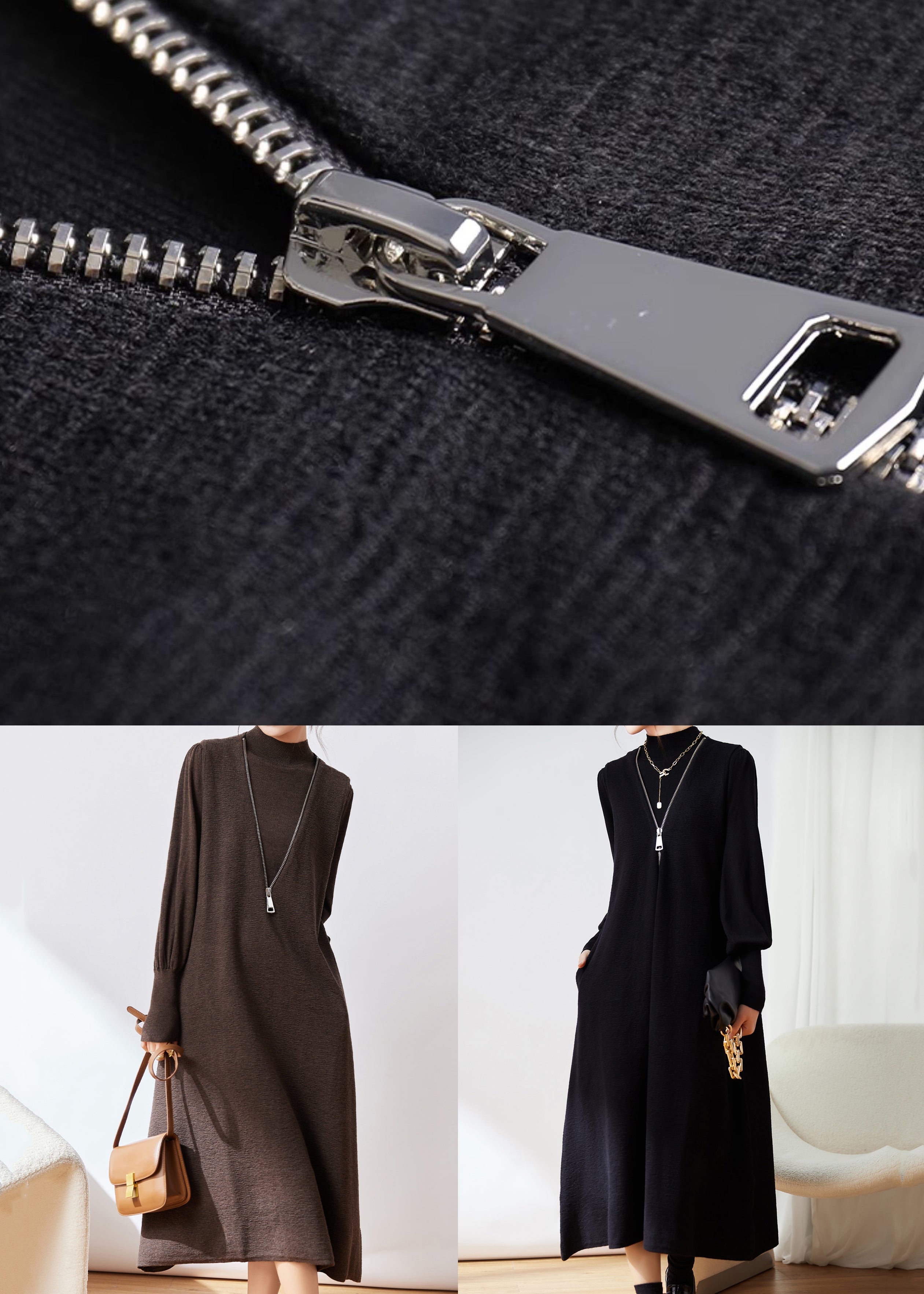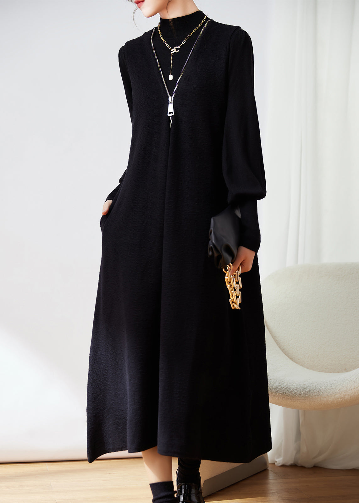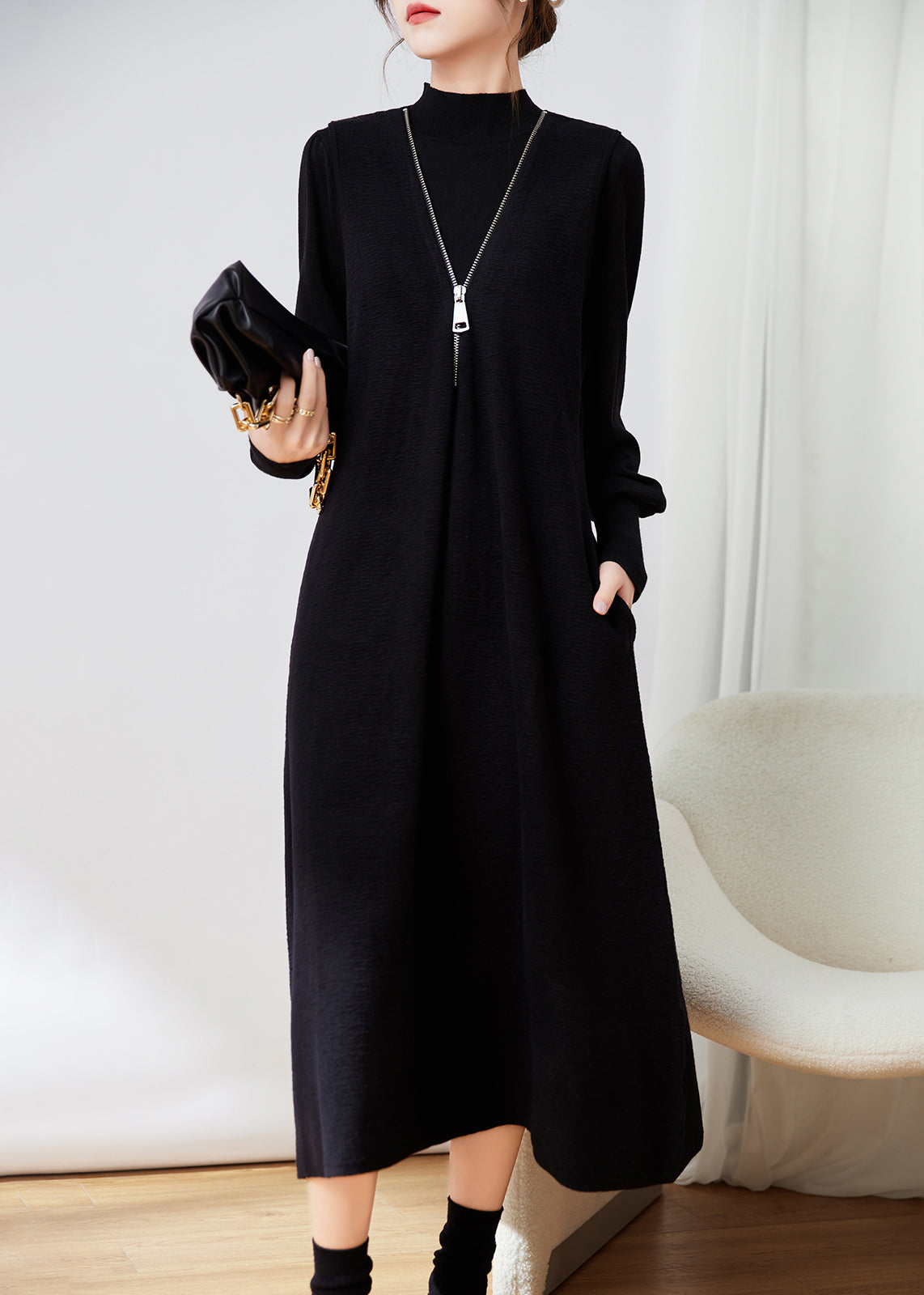 French Black Zippered Waistcoat Dresses And Top Knit Two-Piece Set Winter