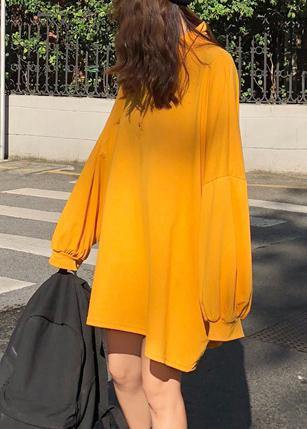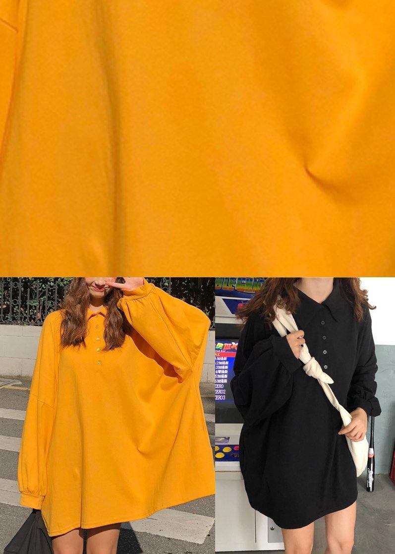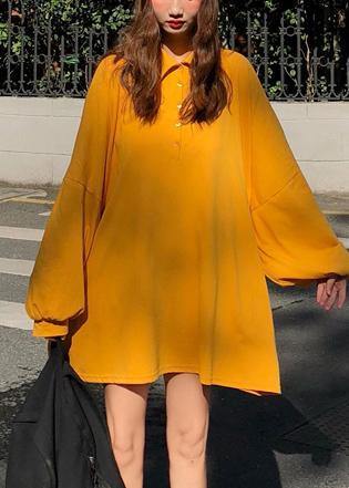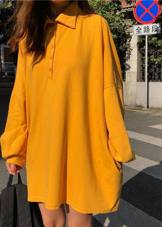 French Turn-down Collar Spring Quilting Dresses Neckline Yellow Dress