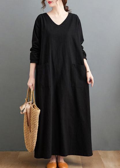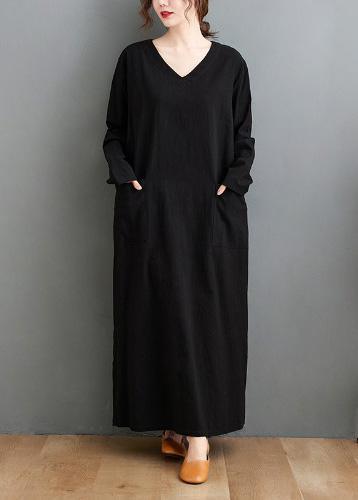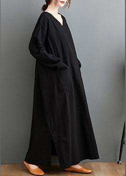 French V Neck Side Open Spring Quilting Dresses Tutorials Black Long Dress