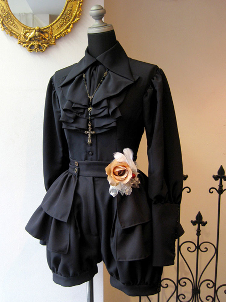 Gothic Lolita Blouses Black Long Sleeves Ruffles Lolita Top Lolita Shirt
