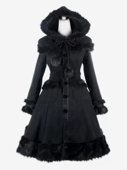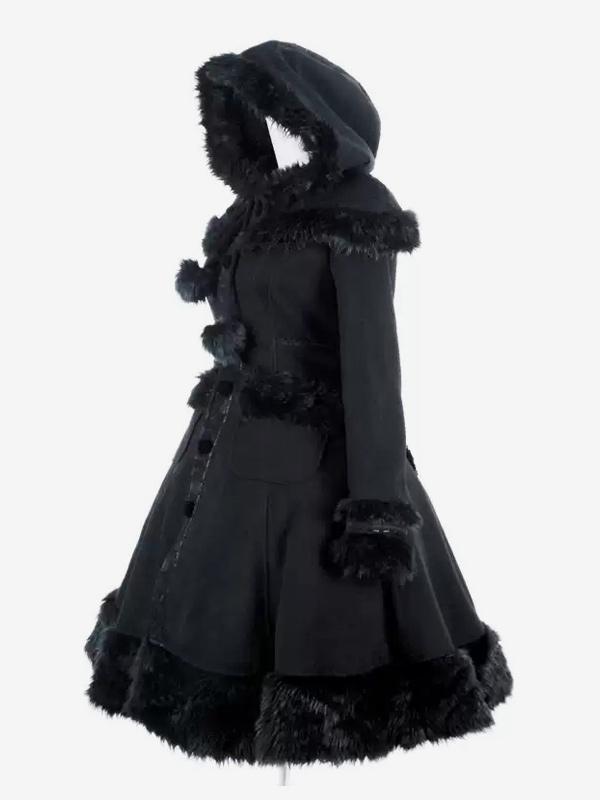 Gothic Lolita Coats Black Coat Pom Poms Overcoat Polyester Fall Lolita Outwears