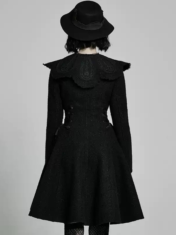 Gothic Lolita Coats Black Coat Pom Poms Overcoat Polyester Winter Lolita Outwears