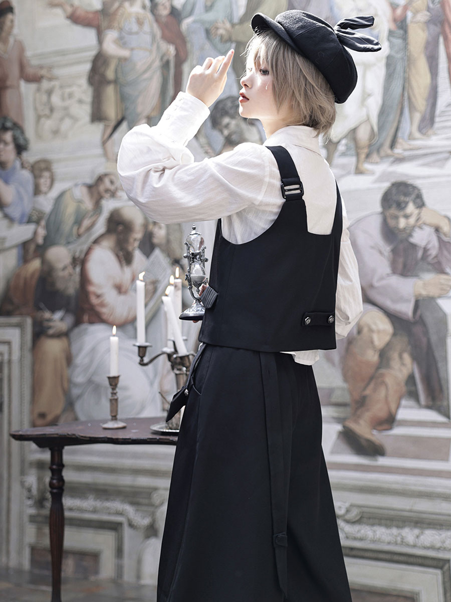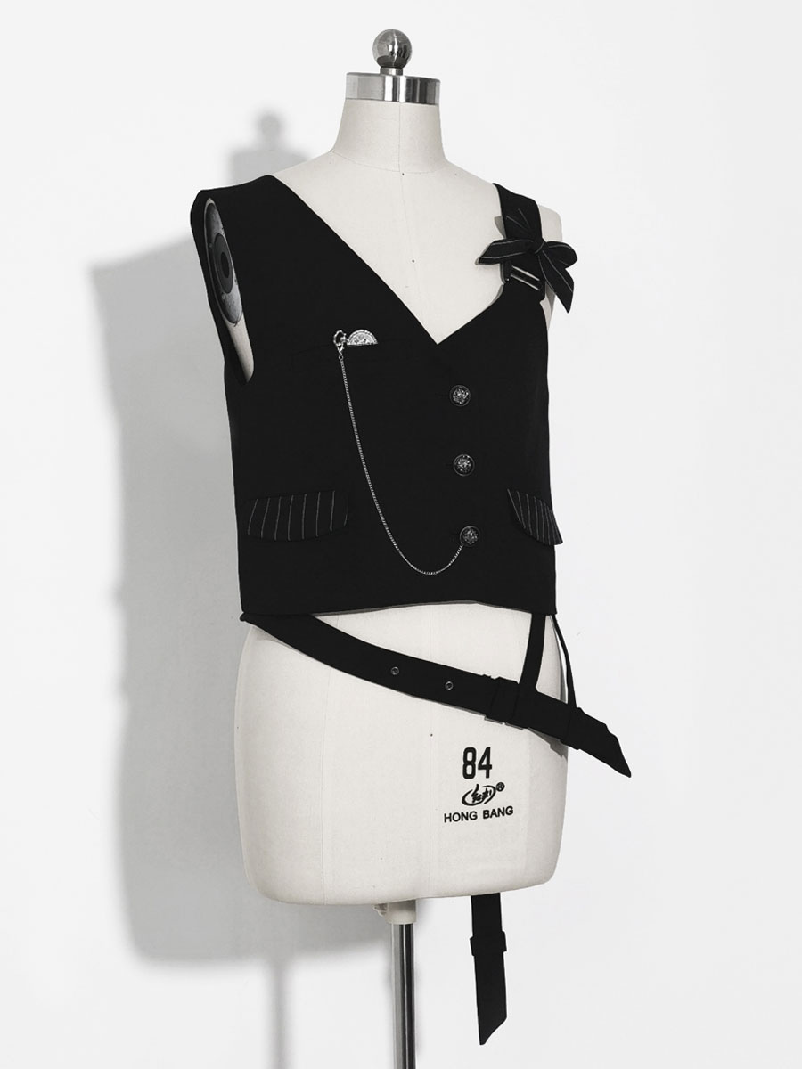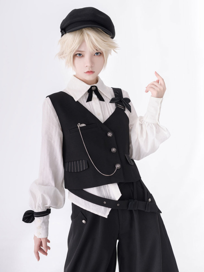 Gothic Lolita Ouji Fashion Black Asymmetrical Shoulder Strap Waistcoat